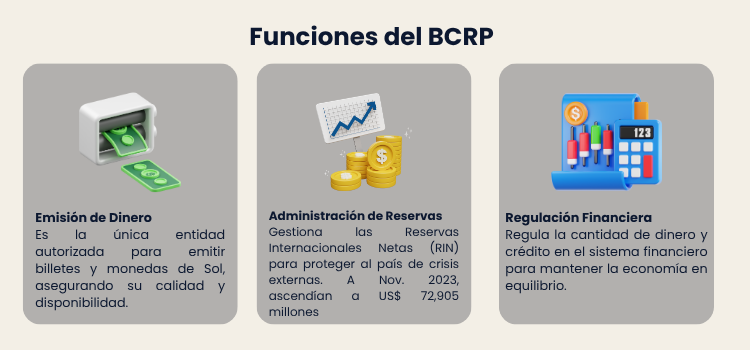 - Tasa de Interés de Referencia: Es su principal instrumento. Al subir o bajar esta tasa, el BCRP influye en el costo de los préstamos en todo el sistema financiero, desincentivando o estimulando el consumo y la inversión para controlar la inflación.