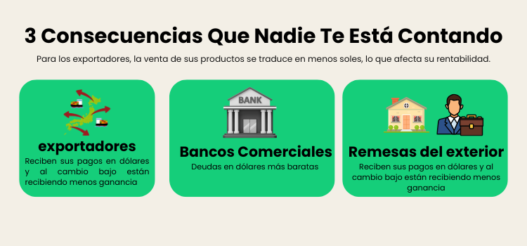 La fluctuación del dólar tiene implicaciones directas en la economía. Para quienes tienen deudas en dólares, este es un momento propicio para evaluarlas y posiblemente cubrirlas, aprovechando el tipo de cambio reducido. Sin embargo, para los exportadores, la venta de sus productos se traduce en menos soles, lo que afecta su rentabilidad. Asimismo, los peruanos que reciben remesas del exterior ven cómo el valor de ese dinero disminuye al ser convertido a soles, impactando directamente en sus ingresos familiares.