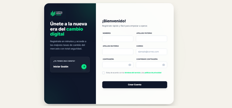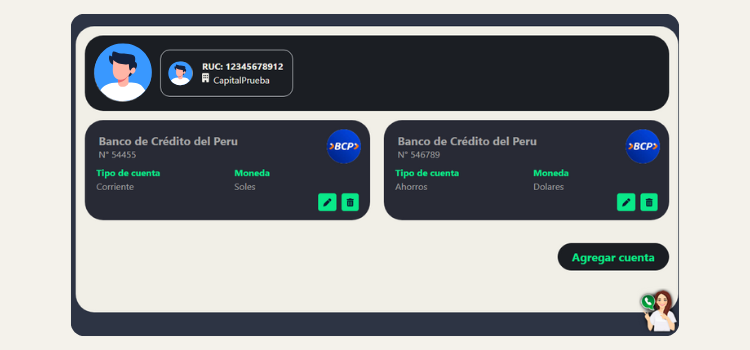 Recuerda: Para operar con total libertad, es indispensable registrar una cuenta en Soles y otra en Dólares. Así podrás realizar tus cambios de moneda sin inconvenientes.