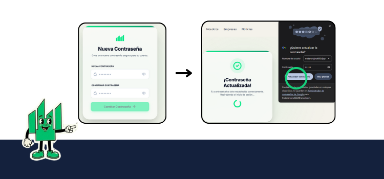 - Recomendación: Si utilizas el gestor de contraseñas de Google, te sugerimos seleccionar la opción "Actualizar contraseña en Google" para facilitar tus próximos inicios de sesión.
